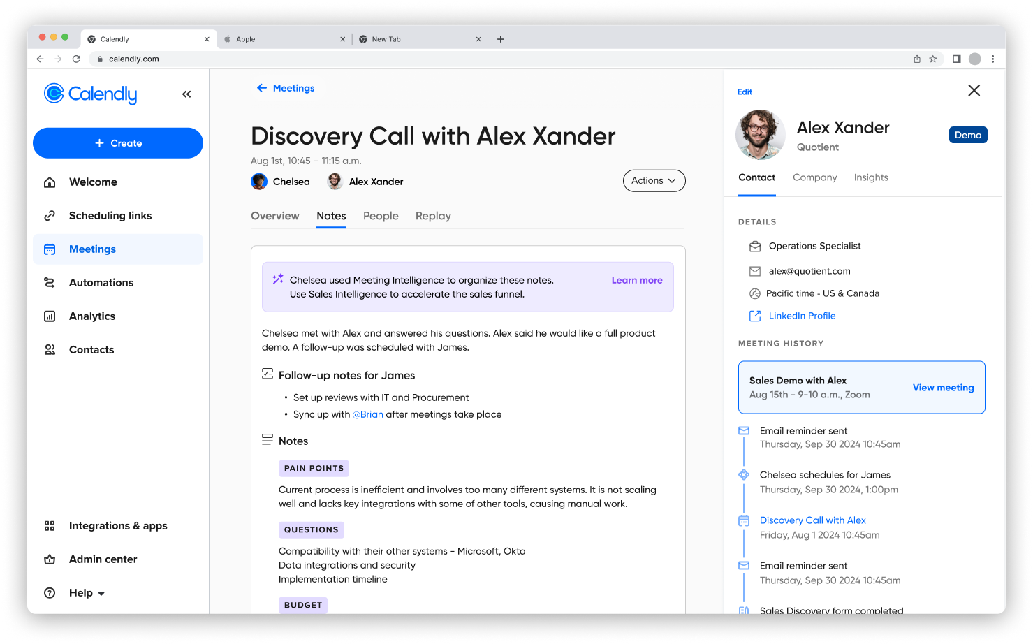 AI opens up a world of new possibilities for established products. At Calendly I worked on a team with executives, leaders and software architects to explore adding conversational intelligence capabilities to the product. Our simple prototype from a two-day workshop evolved into a central part of the long-term product vision.